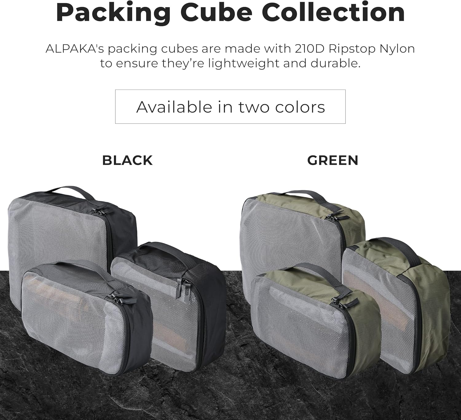 ALPAKA Packing Cube Collection – Small, Medium, and Large Packing Cubes for Travel – Green Weatherproof Fabric Protects Clothes, Shoes, and Gear